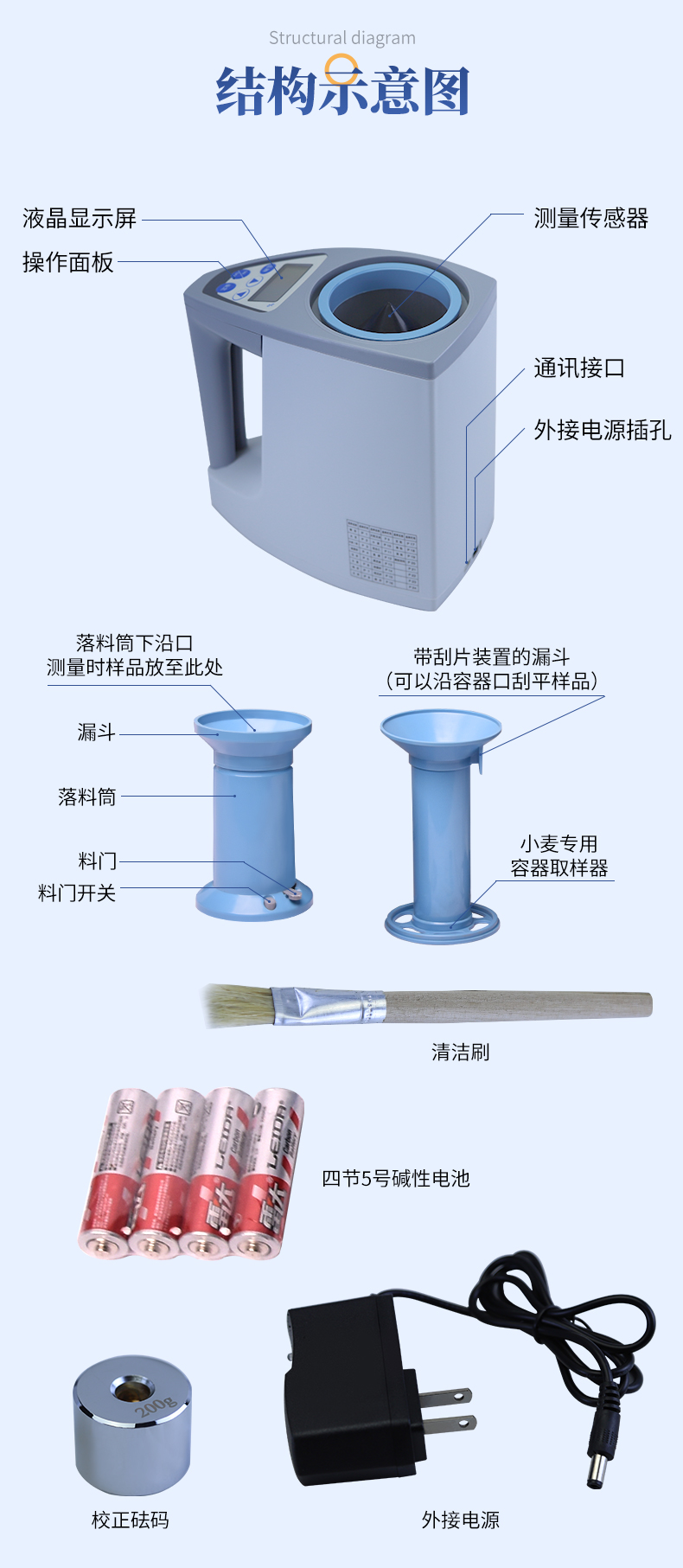 | 容重?fù)Q算:獨(dú)特的專利容重取樣裝置在**測(cè)量小麥的同時(shí),可以直接換算出小麥容重指標(biāo)。 | 測(cè)量范圍:可測(cè)量谷類、玉米、東北玉米、大麥、小麥、白小麥、大米、豆粕、花生仁、菜粕、高粱、黑芝麻、棉籽、棉粕、秈谷、大豆、油菜籽、飼料、蔬菜種子等非金屬顆粒狀物質(zhì)。 | 快速準(zhǔn)確:數(shù)秒內(nèi)即可顯示結(jié)果,測(cè)量誤差≤±0.5℅ | 操作簡單:20個(gè)常見品種已預(yù)先定標(biāo),不需秤樣、用料簡取樣后可立即測(cè)量水分 | 水分測(cè)量范圍:3-35℅ | 使用環(huán)境溫度:0~40℃ | 溫度補(bǔ)償:自動(dòng) | 定 標(biāo):浮動(dòng)四點(diǎn)定標(biāo),品種不限(常見品種20個(gè)已預(yù)先定標(biāo),可直接測(cè)量) | 工作電源,直流6V(5號(hào)干電池四節(jié)) | 自動(dòng)關(guān)機(jī):超過三分鐘無操作自動(dòng)關(guān)機(jī)。 | 便攜方便:重約1千克、外型小巧、電源交直流二用,適合各種工作場(chǎng)合 | 適合國情:用戶可對(duì)本地特殊品種采用本機(jī)獨(dú)創(chuàng)的四點(diǎn)定標(biāo)法自行定標(biāo),自行修正水分值 | 高性價(jià)比:技術(shù)含量高,性能**而價(jià)格相比同類產(chǎn)品較低。 |