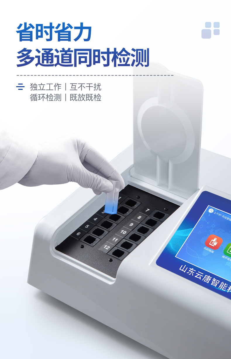 | 乙酰膽堿酯酶和丁酰膽堿酯酶試劑均可以使用,符合國(guó)家標(biāo)準(zhǔn)和農(nóng)業(yè)部標(biāo)準(zhǔn)的要求。 | 自動(dòng)判斷樣品是否合格,檢測(cè)結(jié)果更加直觀(guān)。 | 儀器具有100多種蔬菜名稱(chēng)菜單庫(kù),分類(lèi)管理,并可按需添加或刪除蔬菜名,編輯蔬菜名稱(chēng),可直接打印出蔬菜名稱(chēng)。 | 檢測(cè)通道:20個(gè)檢測(cè)通道,可以同時(shí)測(cè)試多個(gè)樣品,循環(huán)檢測(cè),即放即檢,每個(gè)樣品由程序控制分別獨(dú)立工作,不會(huì)互相干擾。 | 智能操作系統(tǒng),采用更加人性化操作,主控采用多核處理器,主頻1.88Ghz,運(yùn)轉(zhuǎn)速度更快速,穩(wěn)定性更強(qiáng)。 | 顯示方式:7英寸高靈敏真彩觸摸屏顯示,人性化中文操作界面,讀數(shù)直觀(guān)、簡(jiǎn)單。 | 打印機(jī)采用串口5v打印,可選擇手動(dòng)打印或者自動(dòng)打印,三分鐘出打印結(jié)果,打印格式為檢測(cè)人姓名、吸光度差值、檢測(cè)時(shí)間、檢測(cè)機(jī)構(gòu)、樣品名稱(chēng)及結(jié)果判定。 | 光源采用進(jìn)口超高亮發(fā)光二極管,具有低功耗、高精度、穩(wěn)定性強(qiáng)、光源可控可以關(guān)掉不使用的光源,響應(yīng)速度快等優(yōu)點(diǎn)。 | 智能恒流穩(wěn)壓,光強(qiáng)自動(dòng)校準(zhǔn),長(zhǎng)時(shí)間連續(xù)工作光源無(wú)溫漂現(xiàn)象。 | 儀器具有GPRS遠(yuǎn)傳功能,可插手機(jī)卡實(shí)現(xiàn)數(shù)據(jù)遠(yuǎn)傳平臺(tái),wifi聯(lián)網(wǎng)功能,可將數(shù)據(jù)快速上傳電腦,進(jìn)行數(shù)據(jù)管理與統(tǒng)計(jì)。 | 采用USB2.0接口設(shè)計(jì),方便數(shù)據(jù)的存貯和移動(dòng),并可隨時(shí)與計(jì)算機(jī)直接相連,并且可用計(jì)算機(jī)控制儀器。實(shí)現(xiàn)數(shù)據(jù)查詢(xún)、瀏覽、分析、統(tǒng)計(jì)、打印等。 | 智能化程度高,儀器具有自檢功能:具有開(kāi)機(jī)自檢和調(diào)零功能,具有自動(dòng)檢測(cè)重復(fù)性功能 | 儀器具有自身保護(hù)功能,可設(shè)置用戶(hù)名及密碼,防止非工作人員操作等。 | 采用DC12v直流供電,安全系統(tǒng)更高,并且配備6A鋰電池充電器。 | 儀器具有重新校準(zhǔn)、鎖定、恢復(fù)出廠(chǎng)設(shè)置功能。 |