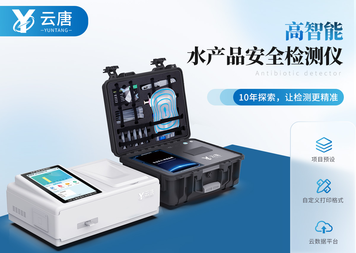 山東云唐智能科技有限公司生產的水產品安全檢測儀可適用于魚、蝦等水產中孔雀石綠、氯霉素、硝基呋喃類:呋喃唑酮(AOZ)、呋喃它酮( AMOZ )、呋喃妥因(AHD)、呋喃西林(SEM)、呋喃那斯、磺胺類、激素類、四環(huán)素類、金霉素、土霉素、甲砜霉素、氟苯尼考、喹諾酮類藥物:噁喹酸、諾氟沙星、恩諾沙星、環(huán)丙沙星、氧氟沙星等藥物殘留的定性檢測