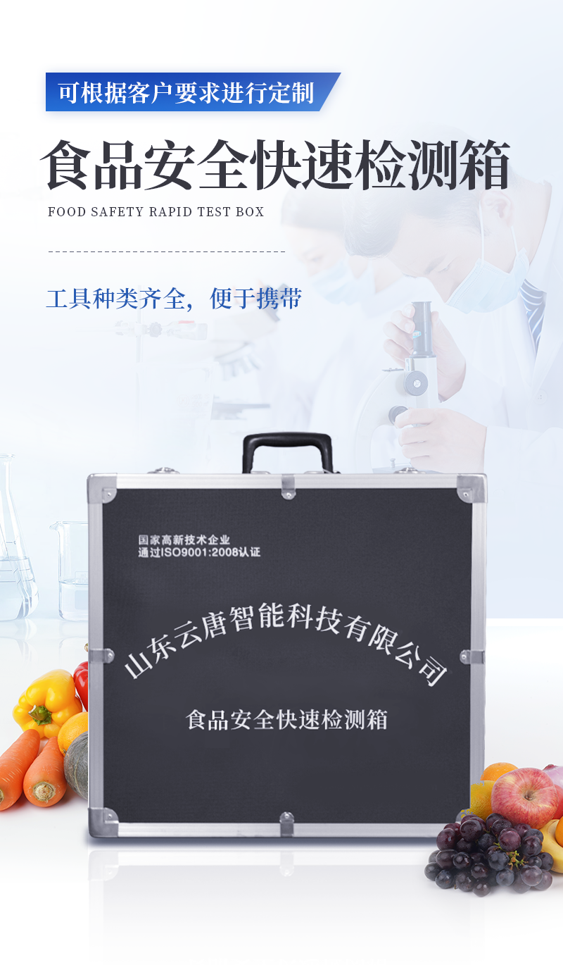 急性中毒快速檢測箱標(biāo)配箱 序號適用范圍檢測項目規(guī)格單位數(shù)量檢測限檢測范圍1果蔬、肉制品類便攜式農(nóng)藥殘留快速檢測儀12通道臺1//農(nóng)藥殘留速測卡20次盒30.3-3.5mg/kg/亞硝酸鹽速測試紙20條套12mg/kg0-40mg/kg砷速測盒30次盒1砷:2mg/kg /汞速測盒30次盒1 汞:20mg/kg/瘦肉精三聯(lián)卡(組織)各10次包2鹽酸克倫克羅、萊克多巴胺3ppb,沙丁胺醇5ppb/2豆制品 奶制品液態(tài)奶新鮮度速測盒20次盒10.60T/豆?jié){生熟度速測盒 50次盒1定性/3飲料、酒類甲醇速測盒(濃硫酸自備) 25次盒10.02g/100mL0-0.32g/100mL4糧食、干果黃曲霉毒素B1檢測卡10次包10.5ppb/5食用油類食用油酸價速測盒100次盒11mg/kg0-8mg/kg食用油過氧化值速測盒100次盒10.09g/100g0.09-0.45g/100g6食物及水中毒物殘留毒鼠強速測盒(乙酸乙酯自備)10次盒12mg/kg/敵鼠鈉鹽速測盒100次盒1100mg/kg/氰化物檢測試紙20條套11mg/L0-10mg/L氟乙酰胺速測盒30次盒150mg/kg/硼酸和硼砂速測盒100次盒125mg/kg定性鼠藥安妥檢測試紙 40次包10.02mg/g,mL/鼠藥磷化鋅速測盒10次包120mg/kg/7箱體預(yù)裝輔助設(shè)備急性中毒箱箱體便攜式個1//便攜水浴鍋功率300W個1多功能剪刀-把1計算器-個1洗瓶250ml個1塑料滴管3ml根10塑料滴管0.2ml根50樣品管架10ml個1天平0.1-200g個1移液器1mL支1玻璃三角瓶100ml個2玻璃樣品管10ml個2小離心管1.5ml個24塑料樣品管10ml個10樣品瓶50ml個2離心管架1.5ml個1燒杯250ml個1量筒100ml個1手套-包1計時器-個1槍頭1ml個20組織提取器便攜式個1錫箔紙10張/包包1裝箱清單-份1產(chǎn)品合格證-份1使用說明書-份1 |