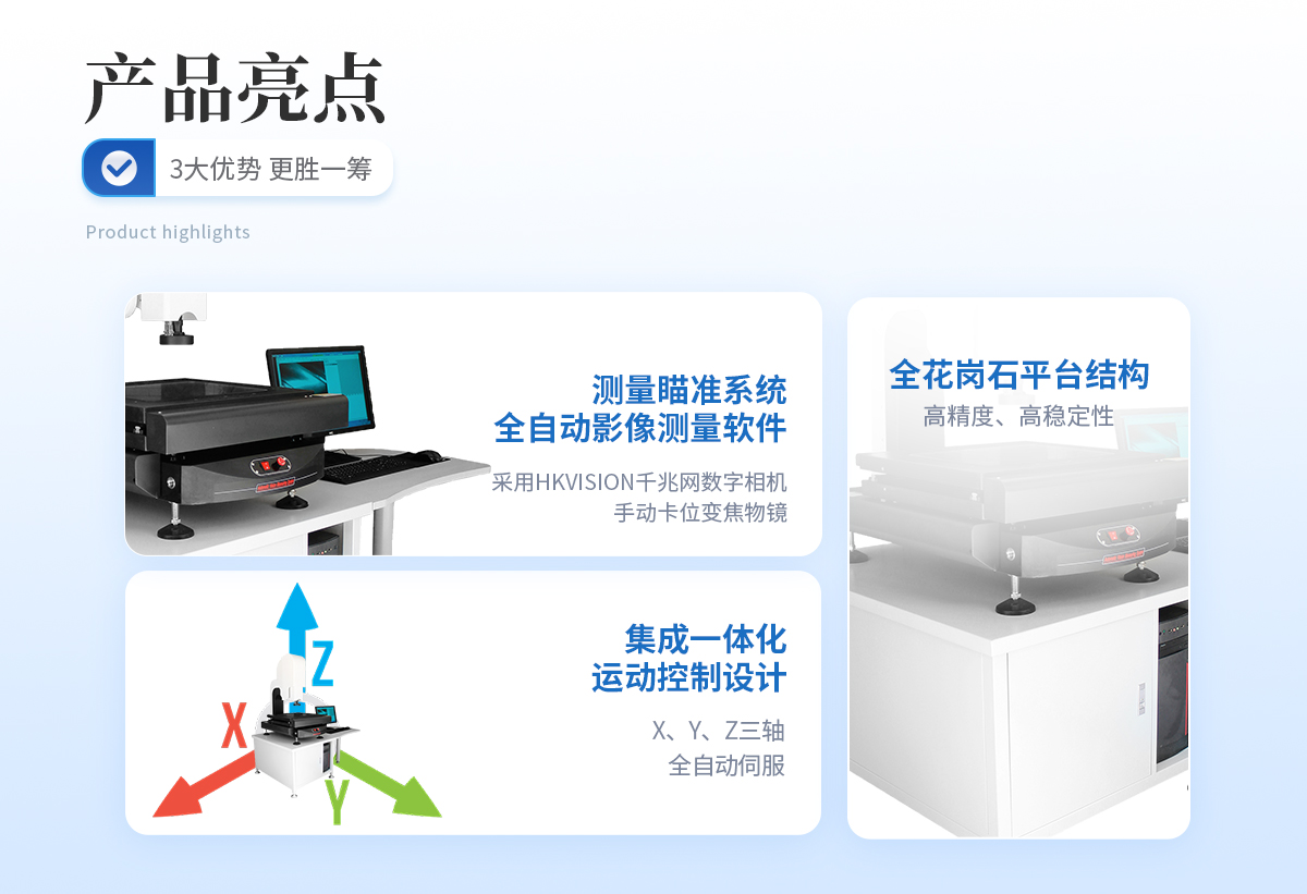 | 儀器基座 高穩(wěn)定性高精度花崗石材質(zhì) 1套 | CCD 700TVL COMST模擬信號相機 1個 | 鏡頭 0.7~4.5 X手動卡位鏡頭(萊斯) 1個 | 光柵尺 高精度位移傳感電子尺,分辨率:1μm (精微) 2條 | 導(dǎo)軌 咸陽藍博P級精密V型導(dǎo)軌(LB) 3組 | 傳動 西德無牙光桿精密傳動(西德)、高精密T型絲桿(特制) 3條 | 表面光源 LED恒流環(huán)形冷光源 1個 | 底光源 綠色單顆LED冷光源+雙組透鏡均光平行底光模組 1PCS | 數(shù)據(jù)采集卡 UWC3200 1PCS | 影像測量軟件 DTV 2.5T手動影像測量軟件 1套 | 光學(xué)校正片 DTV 定制 1塊 | 電纜 AC/DC 5條 |