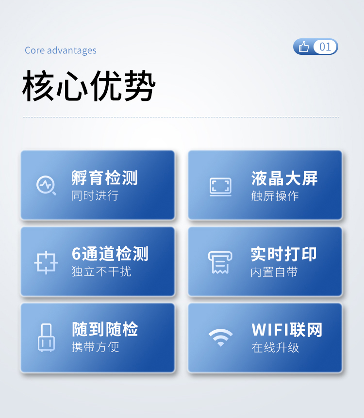 | 一體化設(shè)計(jì),集成孵育和檢測(cè)功能同時(shí)進(jìn)行,孵育完成直接檢測(cè); | 全中文 7英寸高清液晶顯示,觸摸屏操作; | Android 系統(tǒng),支持在線升級(jí),可WIFI聯(lián)網(wǎng); | 檢測(cè)原理:熒光定量免疫層析法; | 6通道設(shè)計(jì),可同時(shí)進(jìn)行一種或多種指標(biāo)的檢測(cè),6個(gè)獨(dú)立檢測(cè)單元,檢測(cè)效率高,并且互不干擾; | 具有二維碼自動(dòng)識(shí)別系統(tǒng),可直接識(shí)別檢測(cè)項(xiàng)目、檢測(cè)流程等信息; | 儀器自帶熱敏打印機(jī),檢測(cè)結(jié)果可實(shí)時(shí)打?。?/td> | 具有檢測(cè)數(shù)據(jù)存儲(chǔ)(存儲(chǔ)數(shù)量不少于 10000 條)、查詢、批量數(shù)據(jù)處理和打印功能; | 儀器≥2 個(gè)USB 接口,可拷貝結(jié)果及原始數(shù)據(jù),具有 wifi 接入模塊,可通過(guò)無(wú)線連接網(wǎng) 絡(luò)實(shí)現(xiàn)數(shù)據(jù)上傳; | 分鐘內(nèi)達(dá)到工作狀態(tài)(37℃),封閉系統(tǒng),不受外界環(huán)境(光、熱)干擾,工作環(huán)境溫度:0-30℃; | 真菌毒素和重金屬可同時(shí)進(jìn)行前處理,并同時(shí)上機(jī)檢測(cè); | 儀器配備全套前處理設(shè)備,拉桿箱設(shè)計(jì),即可用于實(shí)驗(yàn)室檢測(cè)可以外出攜帶檢測(cè) | 相對(duì)極差≤10%; | 重復(fù)性 CV≤1%; | 批間變異≤3%; | 尺寸310x210x93mm |