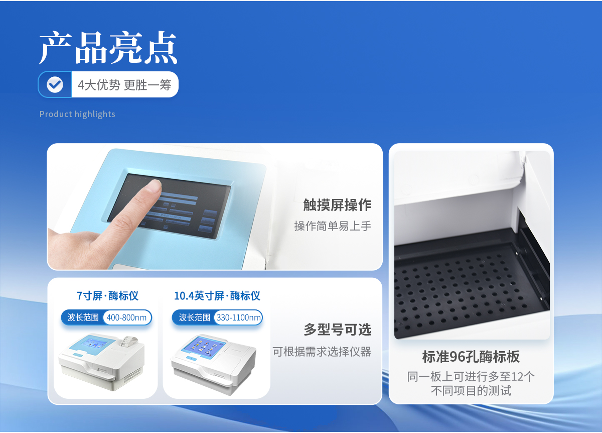 酶標(biāo)儀是酶聯(lián)免疫吸附實(shí)驗(yàn)的專(zhuān)用儀器,基于固定波長(zhǎng)濾光片的酶標(biāo)儀。波長(zhǎng)范圍從340 nm~750nm可滿(mǎn)足不同的科研和臨床使用。適用96孔酶標(biāo)板,可滿(mǎn)足不同通量的要求7英寸 液晶顯示,易于使用,不需操作鍵盤(pán),數(shù)據(jù)和程序可保存在儀器內(nèi),或者通過(guò)U盤(pán)導(dǎo)出。