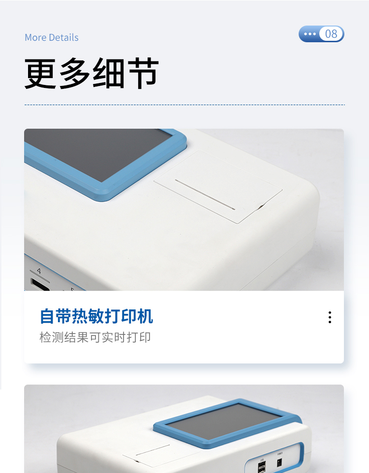 | 一體化設(shè)計(jì),集成孵育和檢測(cè)功能同時(shí)進(jìn)行,孵育完成直接檢測(cè); | 全中文 7英寸高清液晶顯示,觸摸屏操作; | Android 系統(tǒng),支持在線升級(jí),可WIFI聯(lián)網(wǎng); | 檢測(cè)原理:熒光定量免疫層析法; | 6通道設(shè)計(jì),可同時(shí)進(jìn)行一種或多種指標(biāo)的檢測(cè),6個(gè)獨(dú)立檢測(cè)單元,檢測(cè)效率高,并且互不干擾; | 具有二維碼自動(dòng)識(shí)別系統(tǒng),可直接識(shí)別檢測(cè)項(xiàng)目、檢測(cè)流程等信息; | 儀器自帶熱敏打印機(jī),檢測(cè)結(jié)果可實(shí)時(shí)打印; | 具有檢測(cè)數(shù)據(jù)存儲(chǔ)(存儲(chǔ)數(shù)量不少于 10000 條)、查詢(xún)、批量數(shù)據(jù)處理和打印功能; | 儀器≥2 個(gè)USB 接口,可拷貝結(jié)果及原始數(shù)據(jù),具有 wifi 接入模塊,可通過(guò)無(wú)線連接網(wǎng) 絡(luò)實(shí)現(xiàn)數(shù)據(jù)上傳; | 分鐘內(nèi)達(dá)到工作狀態(tài)(37℃),封閉系統(tǒng),不受外界環(huán)境(光、熱)干擾,工作環(huán)境溫度:0-30℃; | 相對(duì)極差≤10%; | 重復(fù)性 CV≤1%; | 批間變異≤3%; | 尺寸310x210x93mm |